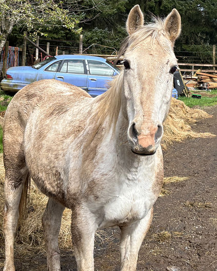 Billy's journey began as a Bureau of Land Management (BLM) pull, spending much of his life confined to a stall. Initially labeled as aggressive and struggling to keep his hooves grounded, Billy endured over two years without access to pasture, resulting in confirmation issues. However, his resilient spirit remained unbroken. Billy is addition to ECSF is a result of the Echo Mountain fires. His continued stay is a result of his mustang spirit and his need for pasture life and herd mates.